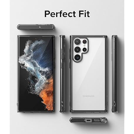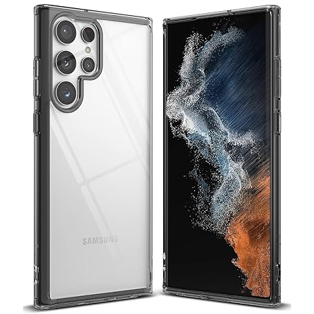 Ringke Fusion Compatible with Samsung Galaxy S22 Ultra 5G Case (2022), Clear Anti-Yellowing Hard Back with Shockproof Protective Bumper Phone Cover for S22 Ultra 6.8-Inch - Smoke Black