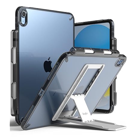 Ringke Fusion & Outstanding [Case + Stand] Compatible with iPad 11th Generation Case (A16, 2025) and iPad 10th Generation Cover (2022) Pencil Holder Adjustable Kickstand - Smoke Black & Light Gray