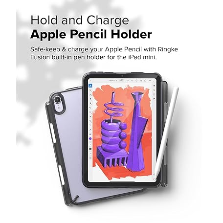 Thông tin sản phẩm Ringke Fusion [Overcharge Prevention] Compatible with iPad mini 6 Case (6th Generation) and iPad mini A17 Pro Case, Transparent Hard Back TPU Bumper Cover with Pen Holder - Smoke Black