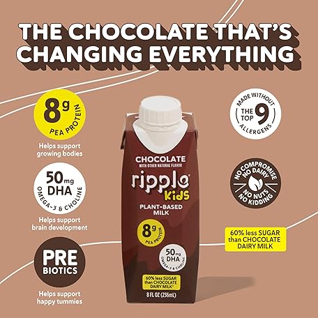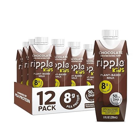 Thông tin sản phẩm Ripple Kids Chocolate Plant Based Milk | Pediatrician Reccommended | 8g Pea Protein | Shelf Stable | Vegan & Non GMO Certififed | Dairy, Soy, Nut, Gluten, and Lactose Free | 8 Fl Oz (Pack of 12)