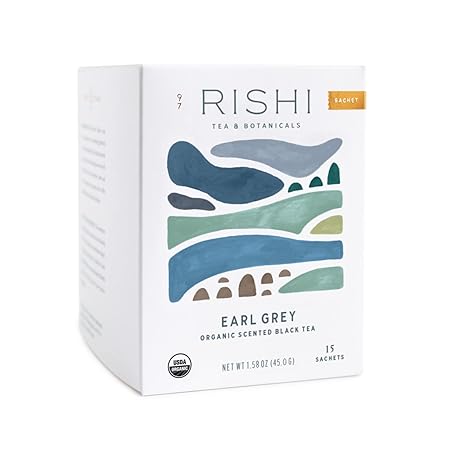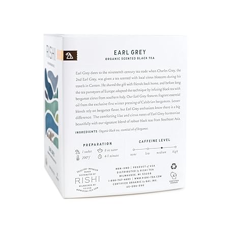 Thông tin sản phẩm Rishi Tea Earl Grey Tea - Organic Sachet Tea Bags, Pure Black Tea with Bergamot Oil, Energizing & Caffeinated - 15 Count (Pack of 1)