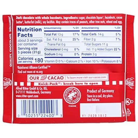 Sản phẩm Ritter Sport Dark Chocolate with Whole Hazelnuts - 3.5 oz đang được bán với giá ưu đãi là $8.6764 tại nước Mỹ.