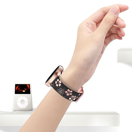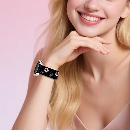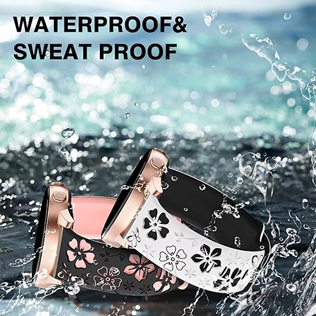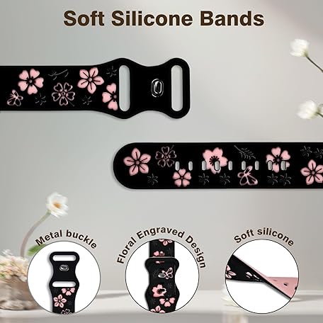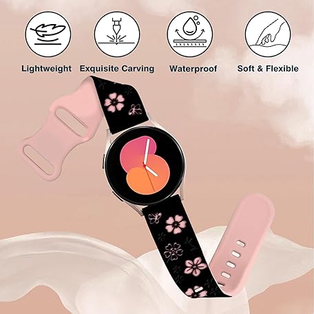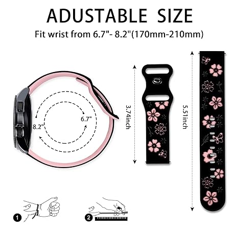 riwoauoo Floral Engraved Band for Garmin Vivoactive 4/Venu 3/Venu 2 45mm Women,22mm Cute Two-Tone Flower Soft Silicone Sport Strap for Garmin Forerunner 570 47mm/265/255/255 Music