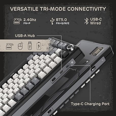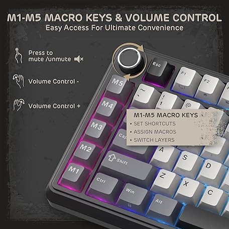 Thông tin sản phẩm RK ROYAL KLUDGE L75 Gasket Mount Mechanical Keyboard w/Knob/Macro Keys & Touchable Nameplate, Tri-Mode 75% TKL Wireless Keyboard BT/2.4G/USB-C, Hot Swappable, Pro Software, Massive 8000mAh Battery