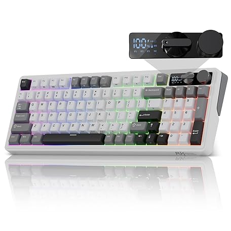 RK ROYAL KLUDGE M100 Wireless Mechanical Keyboard w/Screen & Dual Knobs, Tri-Mode Gasket Mount Gaming Keyboard with Number Pad, Hot Swappable Cream Switch, White