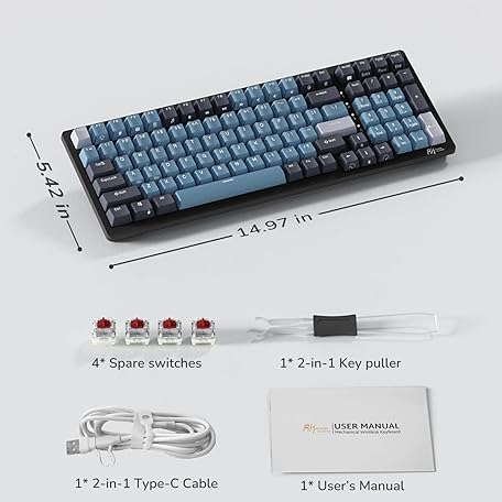 Thông tin sản phẩm RK ROYAL KLUDGE RK98 Wireless Mechanical Keyboard, Triple Mode 2.4G/BT5.1/USB-C Hot Swappable Keyboard with Number Pad, Pre-lubed Linear Switches RGB Backlit Gaming Keyboard, Software Support