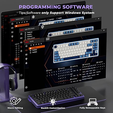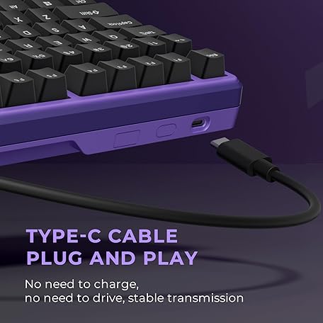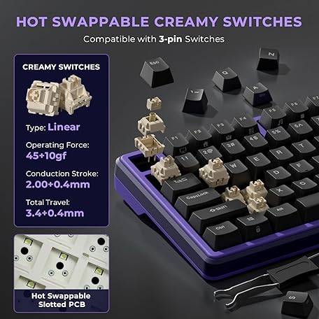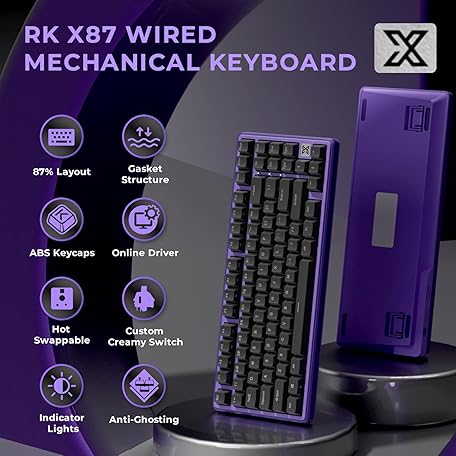 RK ROYAL KLUDGE X87 Mechanical Keyboard 75% Wired Keyboard Gaming with 86 Keys, Gasket Mount, Ice-Blue Backlight, Purple Shell Design, Software Support, Hot-Swappable Creamy Switch Black