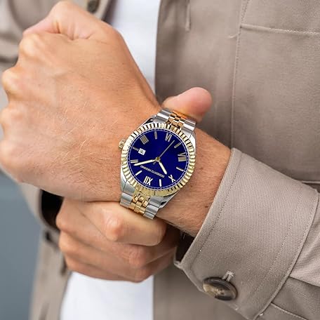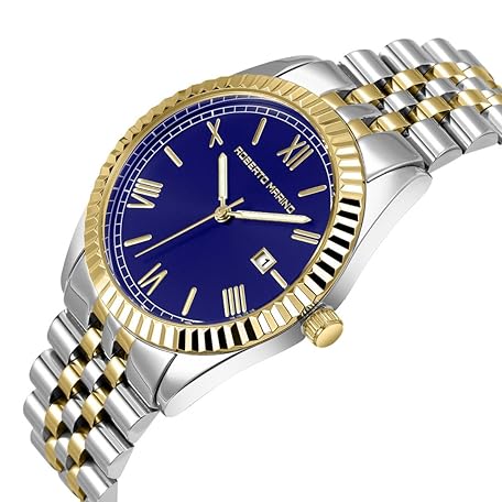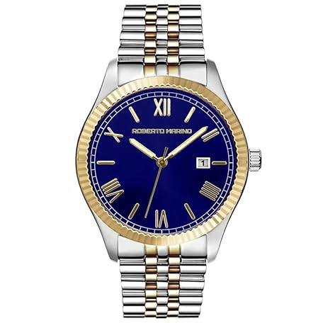 Roberto Marino Men’s Luxury Watch – Gold Stainless Steel, Japanese Quartz, Blue Dial, 3 ATM Water Resistant
