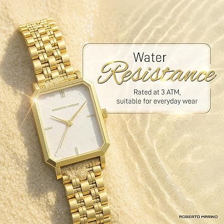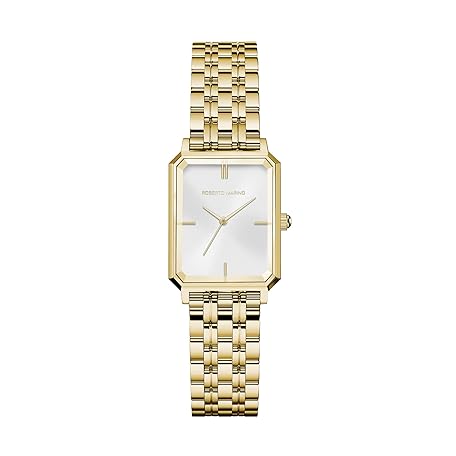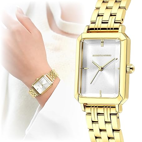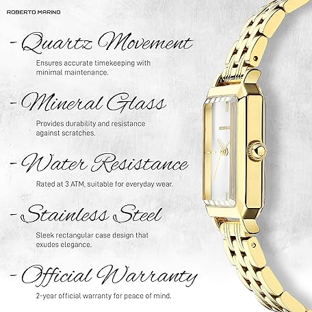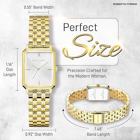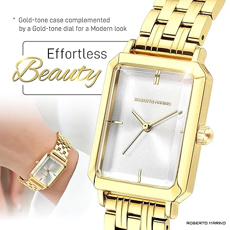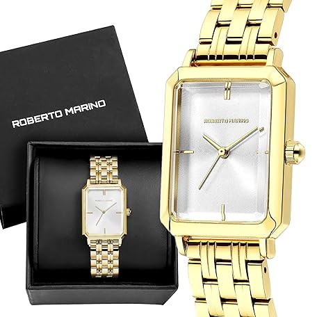 Roberto Marino RM1982 Women’s Luxury Watch Rectangular Gold – Japanese Quartz Movement, Vintage Stainless Steel Design, Silver Dial, Elegant Dress Timepiece, 3ATM Water Resistant – Reloj para Mujer