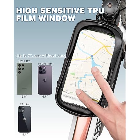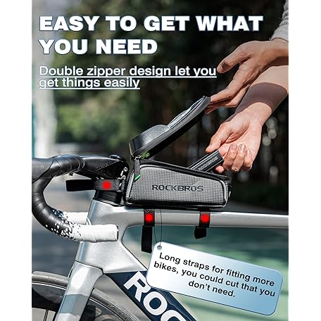 Thông tin sản phẩm ROCK BROS Bike/Bicycle Phone Front Frame Bag, Waterproof, Tube Bag,Cycling Pouch, Bike Accessories for Men Compatible Phone Under 7”
