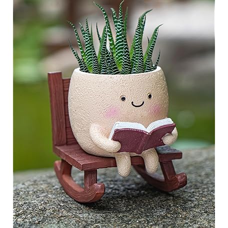 Rocking Chair Smiley Face Planter,Cute Plant Pots for Indoor Outdoor Plants,Succulent Pots with Drainage Hole,Unique Funny Flower Pot for Succulents,Plant Gifts for Mother's Day, Birthday, Christmas