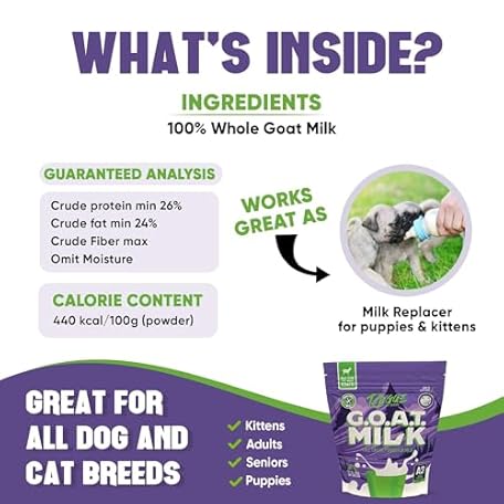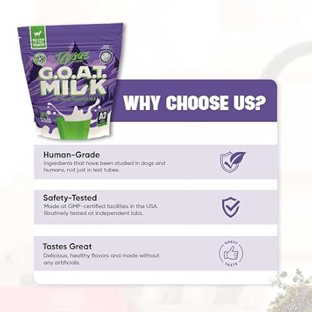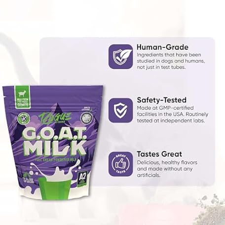 Thông tin sản phẩm Rogue Pet Science G.O.A.T Milk – Powdered Goat Milk for Dogs and Cats. One 16-oz Bag Makes 6 Quarts. Human Grade A2 Powder for Adult Pets, Senior Hydration, Puppy and Kitten Food Topper