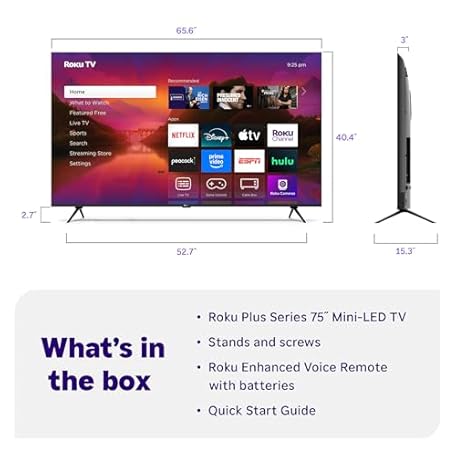 Roku Smart TV 2025 – 75-Inch Plus Series, Mini-LED TV – RokuTV with Enhanced Voice Remote – Flat Screen 4K QLED Television with Dolby Vision & Wi-Fi for Streaming Live Local News, Sports