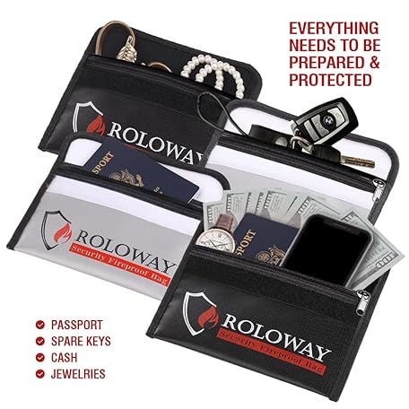 Thông tin sản phẩm ROLOWAY Small Fireproof Bag (5 x 8 inches), Non-itchy Fireproof Money Bag for Cash, Valuables, Passport, Currency & Keys (2-Pack)