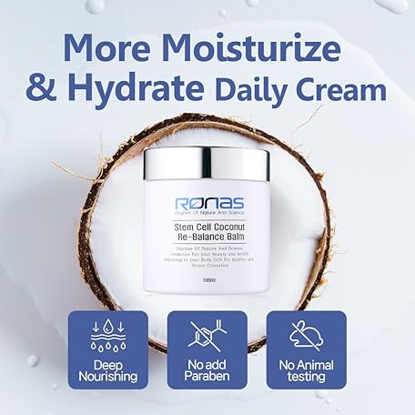Sản phẩm Ronas Stem Cell Coconut Rebalance Balm Anti Aging Cream Face Neck Moistureizer for Women Coconet oil Soothing and Powerful moisturization Shea butter Deep softening Korean Skin Care 3.3fl oz đang được bán với giá ưu đãi là $32.6891 tại nước Mỹ.