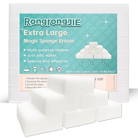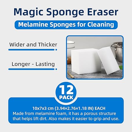Thông tin sản phẩm RongrongJIE Extra Large Magic Sponge Eraser, 12 Pack, Thick, Long Lasting, Melamine Sponges for Cleaning, Multi Surface Power Scrubber Cleaning Pads for Kitchen, Bathroom, Furniture, Tub, Sink, Dish
