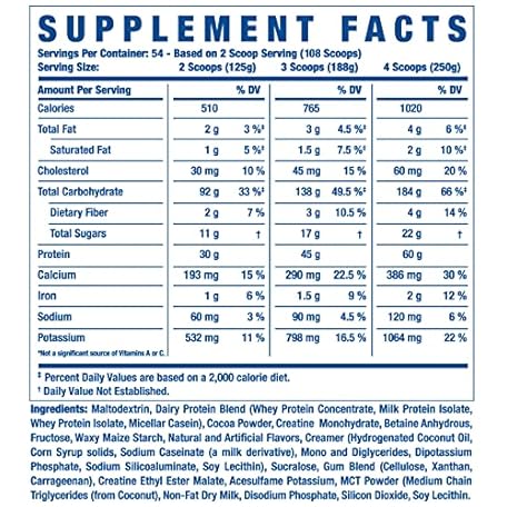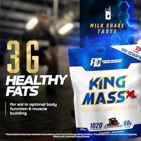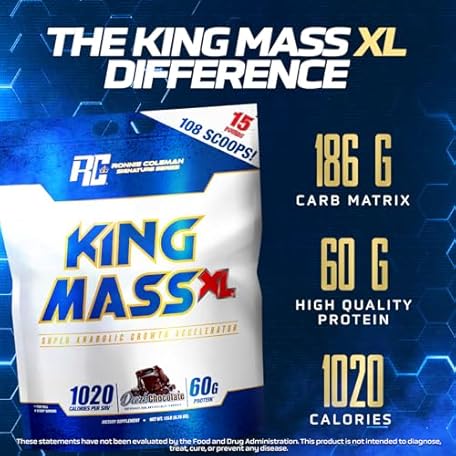 Thông tin sản phẩm Ronnie Coleman Signature Series King Mass XL Mass Gainer Protein Powder, Muscle Gainer, 60g Protein, 180g Carbohydrates, 1,000+ Calories, Creatine and Glutamine, Dark Chocolate, 15 Pound