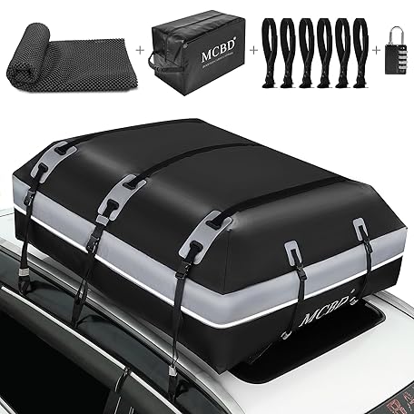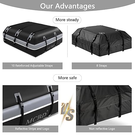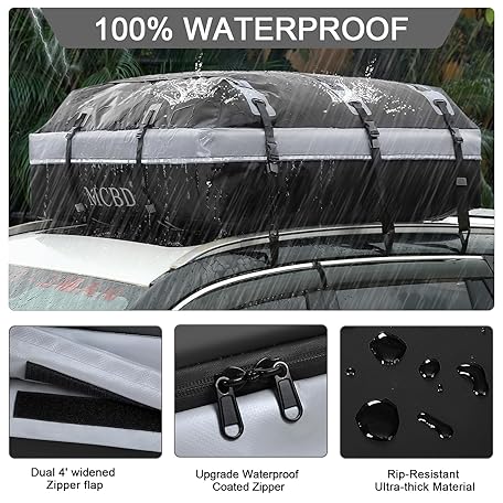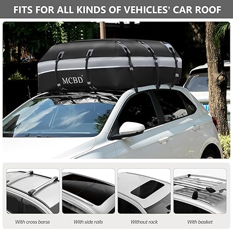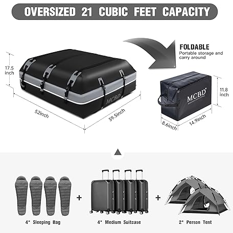 Rooftop Cargo Carrier, 21 Cubic Feet Soft-Shell Waterproof Car Roof Luggage Bag for All Vehicles SUV with/Without Rails, Includes 10 Reinforced Straps + 6 Door Hooks,Storage Bag,Anti-Slip Mat