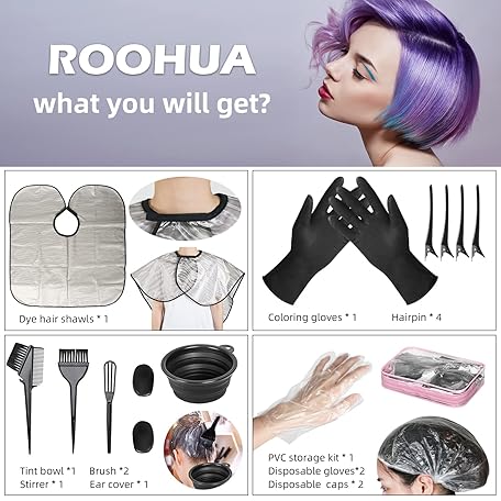 Thông tin sản phẩm ROOHUA 16 Pieces Hair Dye Coloring Kit- Hair Tinting Bowl, Hair agitator, Dye Brush, Ear Cover, Hairpin, Hair Coloring Cape For Hair Dye Tools