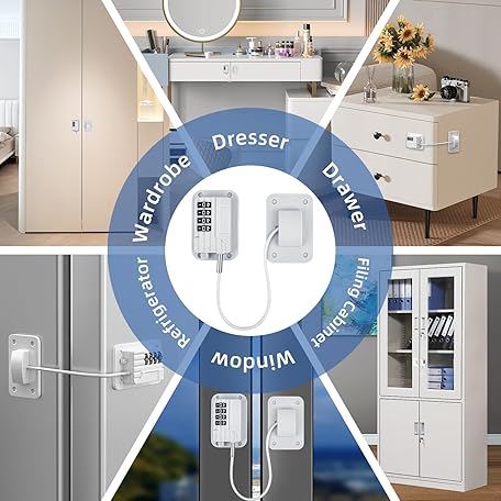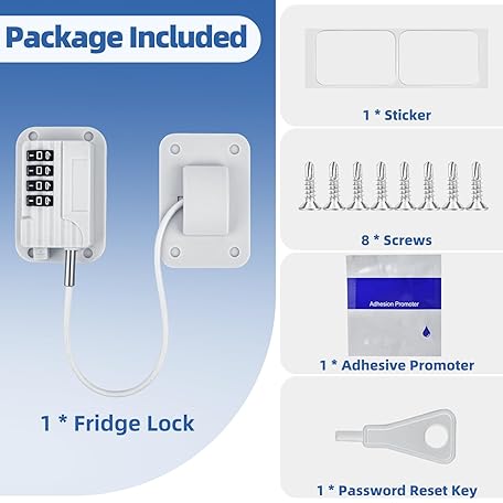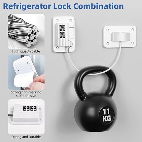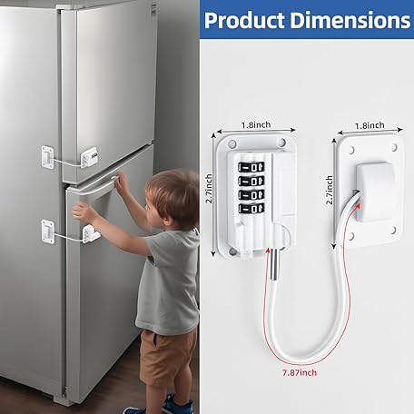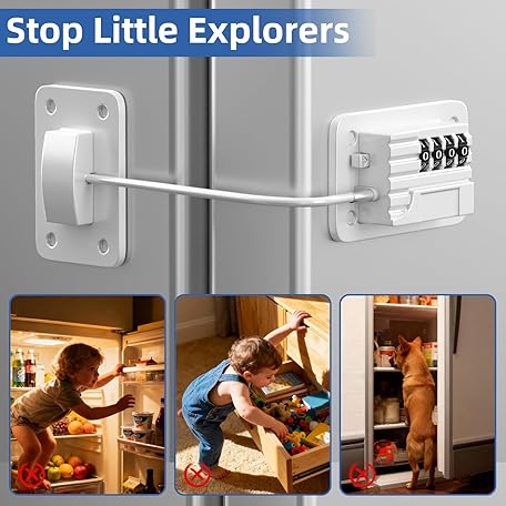 RORMGO Refrigerator Lock, Heavy Duty Fridge Locks for Kids, Freezer Lock with Combination for Refrigerator Drawer Cabinet Safety, Easy to Install No Keys Needed White