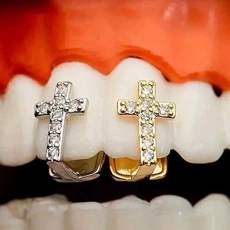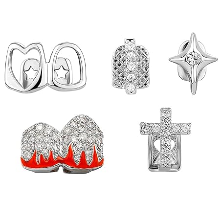 Sản phẩm Rotroyce 5PCS Gold & Silver Grillz Set for Teeth – Hip-Hop Punk Iced Out Cross, Star, Flame Tooth Caps – Adjustable One Size Grillz with Molding Bars for Men & Women Party Jewelry đang được bán với giá ưu đãi là $18.5191 tại nước Mỹ.