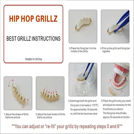 Thông tin sản phẩm Rotroyce 5PCS Gold & Silver Grillz Set for Teeth – Hip-Hop Punk Iced Out Cross, Star, Flame Tooth Caps – Adjustable One Size Grillz with Molding Bars for Men & Women Party Jewelry