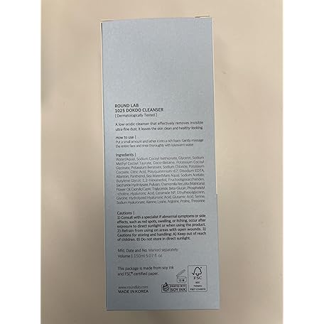 Thông tin sản phẩm ROUND LAB 1025 Dokdo Cleanser 5.07 Fl Oz, Low pH Facial Cleanser for Sensitive Skin, Rich Soft Bubbles for Deep Cleansing and Makeup Removal, Hydrating Face Wash with Deep Sea Water, Korean Skin Care