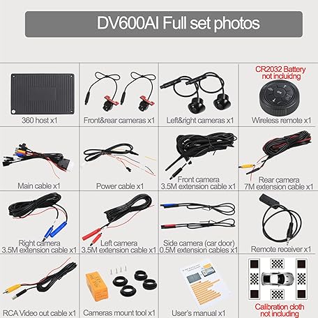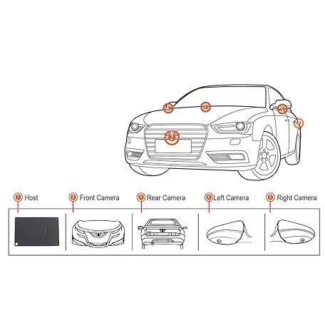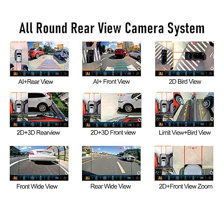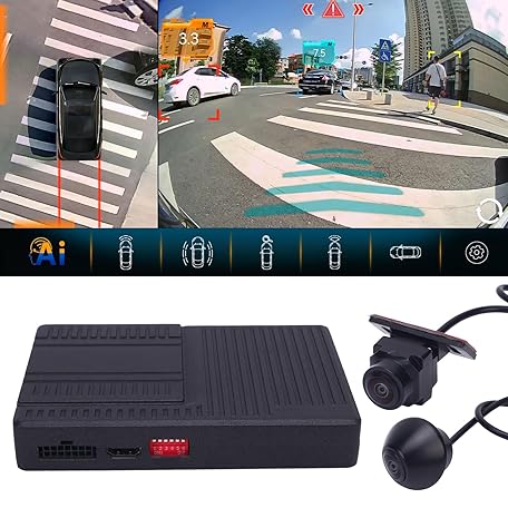 Round Rear View Camera System 360 Degree Panoramic Bird View Universal Fit for Most Cars with AI Detection and Recording