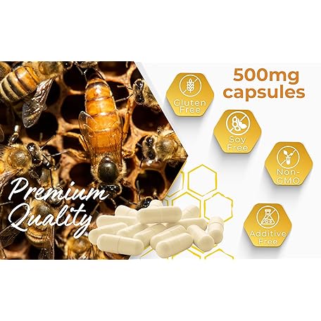 Thông tin sản phẩm Royal Jelly Capsules – 500 mg Energy, Glowing Skin and Brain Booster Supplement | Non-GMO, Gluten-Free, 60 Easy-to-Swallow Veggie Capsules