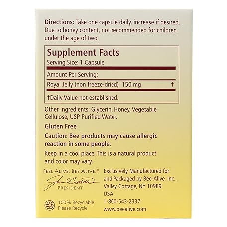 Thương hiệu BeeAlive là cái tên nổi tiếng được rất nhiều khách hàng trên thế giới chọn lựa. Với kiểu dáng đẹp mắt, sang trọng, sản phẩm Royal Jelly Energy Formula Non Freeze-Dried 150mg 30 Capsules là sự lựa chọn hoàn hảo nếu bạn đang tìm mua một món cho riêng mình.