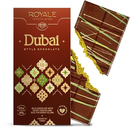 Royale Chocolatier Large Dubai Chocolate Bar (200 gr)|Grade-A Pistachio and Knafeh | Gooey Filling | Coverture Cocoa Butter | White Chocolate Drizzle | No Preservatives or Artificial Coloring