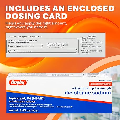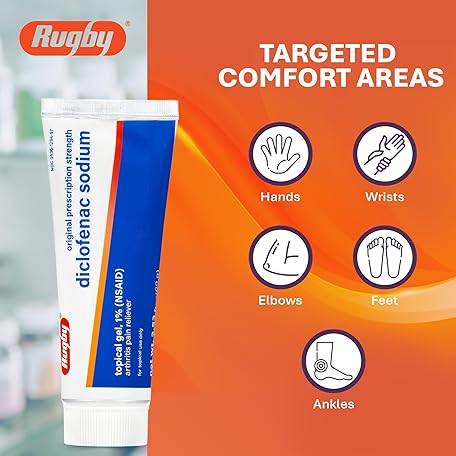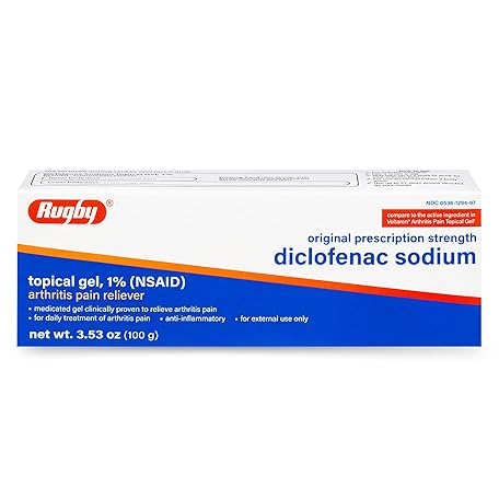 Thông tin sản phẩm Rugby Diclofenac Sodium Topical Gel 1%, NSAID Anti-Inflammatory Prescription Strength Medicated Gel – Daily Arthritis Pain Reliever for Hands, Wrists, Elbows, and Feet 3.53 Oz