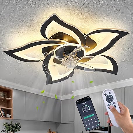 Sản phẩm Ruibutrade Black Flower Modern CeilingFans with Lights, Low Profile Ceiling Fan with Remote for Bedroom, Flush Mount Ceiling Fan with LED Dimmable Light,6-Speeds, Timing CeilingFan Light đang được bán với giá ưu đãi là $65.3891 tại nước Mỹ.