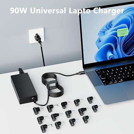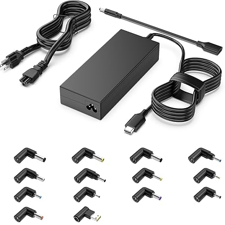 • Ruilezyo 100W 90W Universal Laptop Charger USB C Comaptible with Dell HP Acer Asus IBM Toshiba Samsung Sony Fujitsu Gateway Notebook Chromebook AC Adapter Power Cord with 15 Tips(Work with 65W 45W)