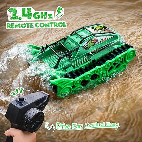 Ruko 1604 Amphibious Remote Control Car, Waterproof Eagle Monster Truck, 360° Rotating Tank, Full Throttle, Cool Tricks Track Toys for Age 6 7 8 9 10 Year Old Boys Girls Birthday Gifts, Green