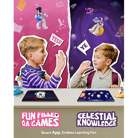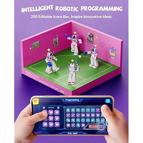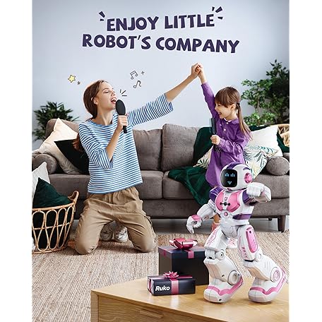 Ruko 6088 Dancing Robot for Girls with APP Control, Remote Control, Gesture Sensing Control, Interactive LED Faces, QA Games Rechargeable Programmable Robot Toys for 3 4 5 6 Years Kids, Pink Purple
