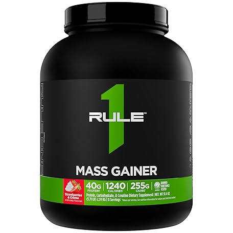 Thương hiệu Rule 1 Proteins là cái tên nổi tiếng được rất nhiều khách hàng trên thế giới chọn lựa. Với kiểu dáng đẹp mắt, sang trọng, sản phẩm Rule 1 Mass Gainer - High-Calorie Weight Gain Formula with 1,220+ Calories, 250g+ Complex Carb Blend, 40g All-Whey Protein Per Serving (8 Servings, Strawberries & Crème) là sự lựa chọn hoàn hảo nếu bạn đang tìm mua một món cho riêng mình.