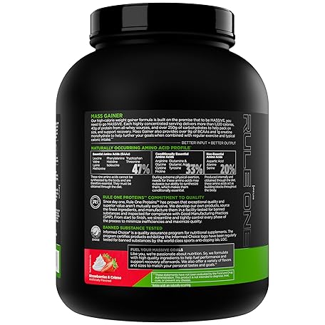 Thông tin sản phẩm Rule 1 Mass Gainer - High-Calorie Weight Gain Formula with 1,220+ Calories, 250g+ Complex Carb Blend, 40g All-Whey Protein Per Serving (8 Servings, Strawberries & Crème)