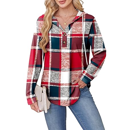 • RUMIA Womens Tops V Neck Button Sweatshirt for Women Pullover Long SLeeve Shirts Fall Outfits 2025 Loose Fit S-3XL