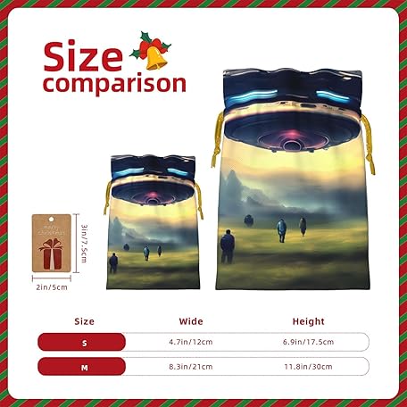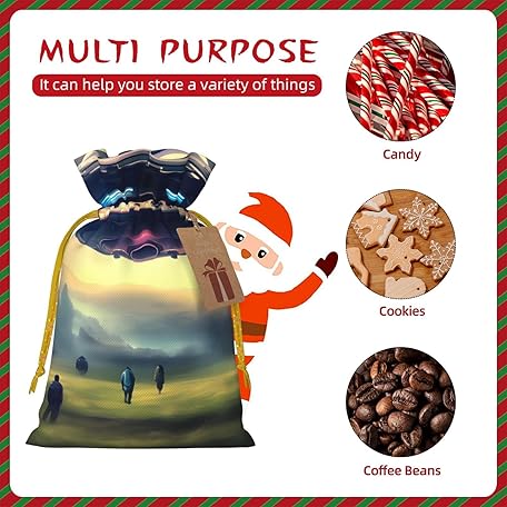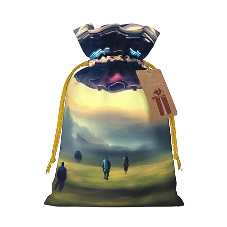 Sản phẩm Ruzoap Christmas Burlap Gift Bags with Drawstrings, UFO landing - Christmas Treat Candy Bags for Holiday Party Wrapping Xmas Present - Small đang được bán với giá ưu đãi là $10.8891 tại nước Mỹ.