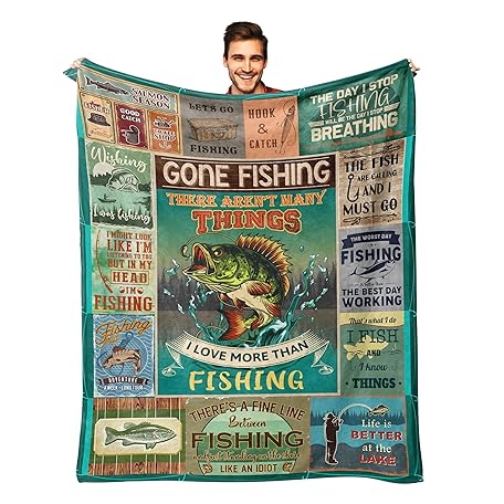 Ryubein Fishing Gifts for Men, Fishing Gifts, Gifts for Fishermen, Fishings Present for Men Women Teen Boys Dad Unique, Gifts for Man Who Love Fishings, Christmas Fishing Blanket 50" X 60"
