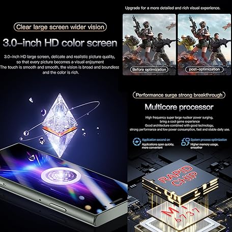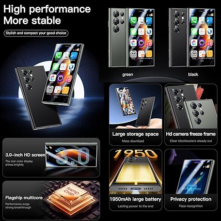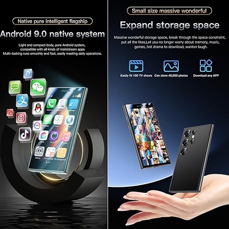 • S23Pro 4G Mini Smartphone 3.0 Inch WiFi GPS MT6737 Quad Core Android 9.0 FDD TDD Unlocked Cell Phones Slim Body HD Camera Dual Sim Cute Palm Smartphone (Black 2GB+16GB)
