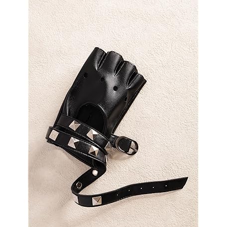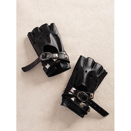• Sacina Goth Emo Grunge Black PU Leather Fingerless Gloves, Biker Goth Punk Cosplay Gloves, Gothic Punk Accessories for Women