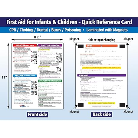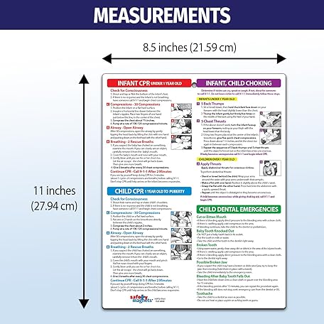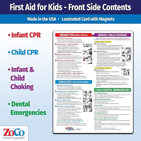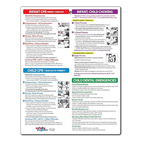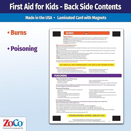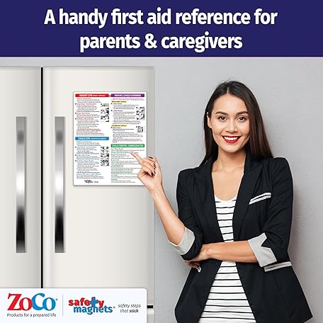 Safety Magnets by ZOCO – Infant and Child First Aid Magnet – CPR Choking Poison Control Burns Dental Emergency Chart – Laminated 8.5x11 Magnetic Quick Reference Card for Fridge