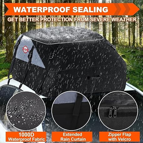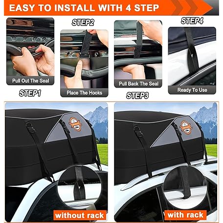 Thông tin sản phẩm Sailnovo Rooftop Cargo Carrier Roof Bag, 20 Cubic feet Waterproof Roof Cargo Carrier fit car with/Without Luggage Rack - Vehicle Soft Shell Roof Cargo Box with Tie-Down Strap, Safety Hook