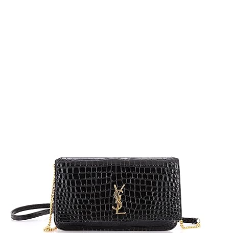 Saint Laurent, Pre-Loved Classic Monogram Phone Holder Shoulder Bag Crocodile Embossed Leather, Black