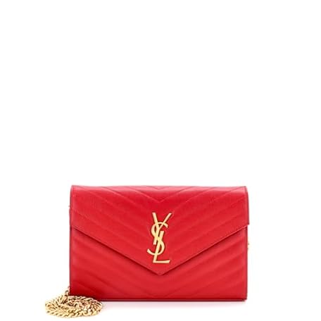 Saint Laurent, Pre-Loved Classic Monogram Wallet on Chain Matelasse Chevron Leather Medium, Red