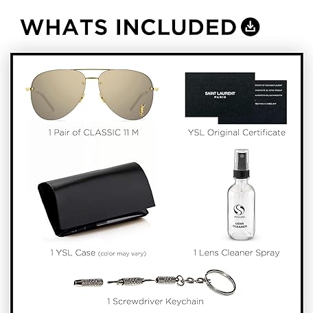 Sản phẩm SAINT LAURENT SL CLASSIC 11 M Pilot shape Sunglasses + Bundle with eSHADES Luxury Eyewear Kit đang được bán với giá ưu đãi là $456.71 tại nước Mỹ.