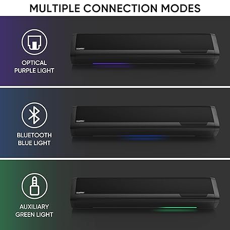 Thông tin sản phẩm Saiyin Sound Bars for TV with Subwoofer, 2.1 Deep Bass Small Soundbar Monitor Speaker Home Theater Surround System PC Gaming Bluetooth/AUX/Optical Connection, Wall Mountable 17-inch