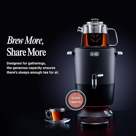 Thông tin sản phẩm SAKI Chaiovar Electric Samovar - 4L Stainless Steel Electric Tea Maker, Temperature Display, Large Glass Teapot, Boil Dry & Auto Shut Off, Best for Persian, Russian, and Turkish Tea (Space Grey)